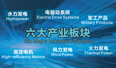 主要產品:150MW以下混流、軸流、貫流、沖擊式及抽水蓄能水輪發電機組;60MW以下汽輪發電機、TRT發電機、燃氣發電機;風力發電機;高效電機;軍工產品;新能源汽車驅動電機及控制器;核電、光伏電部件和特種電機。 服務產業:電站機組遠程監控及診斷增值服務;電站機組維修與改造;電站機組項目運行管理。